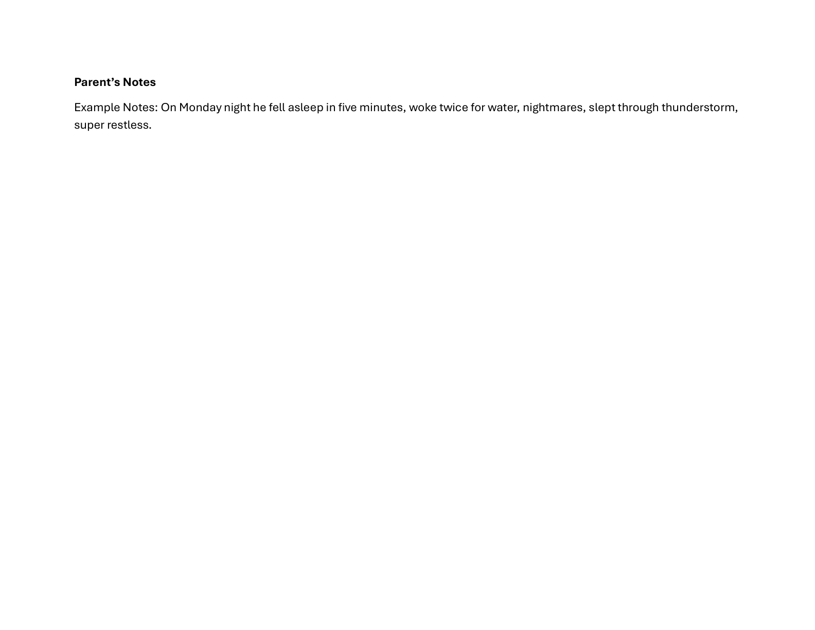 At the end of the week, review your entries and look for patterns. This will help you better understand your child’s sleep and make positive adjustments.